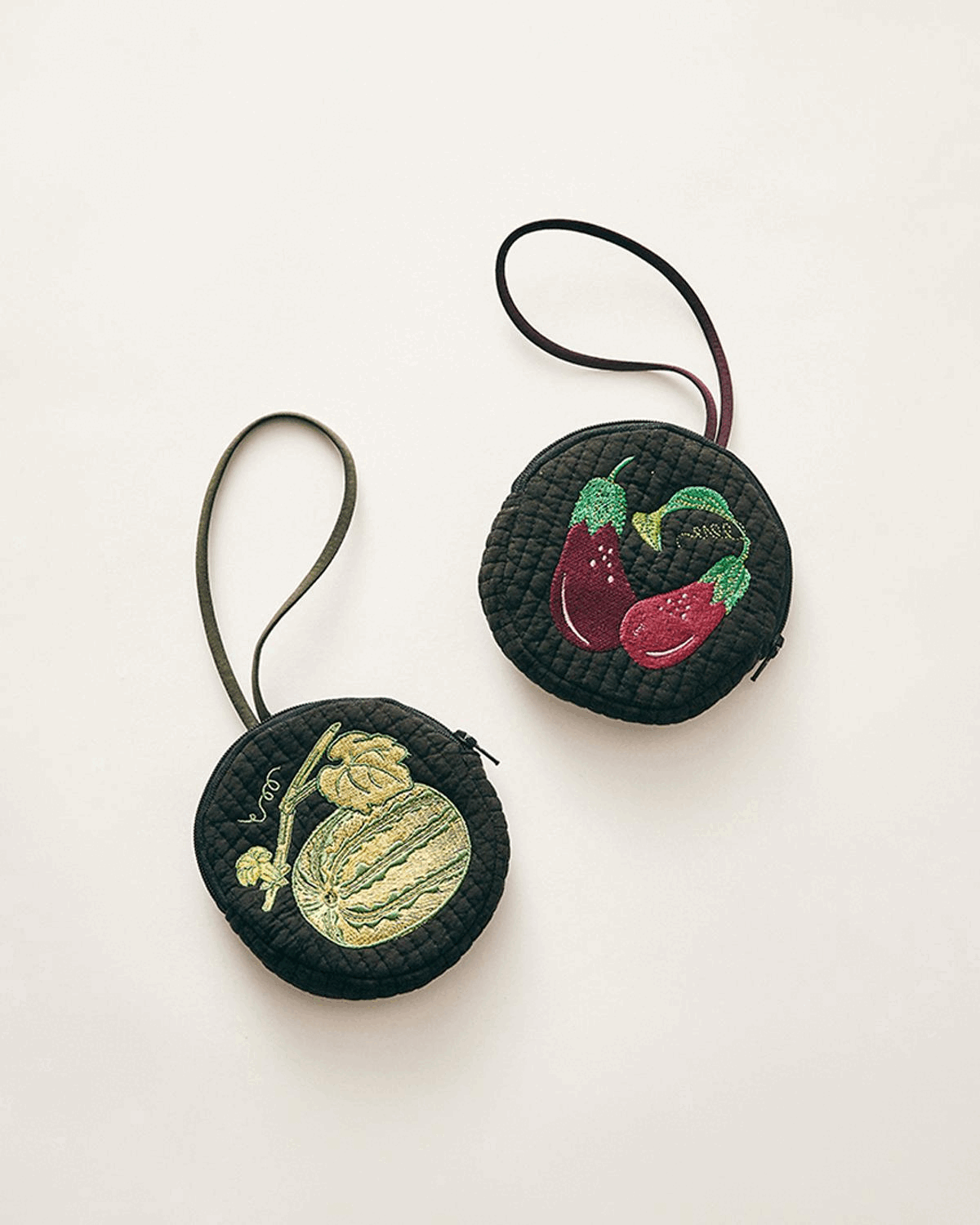 수박을 서리하는 쥐가 멘 그 가방, 자세히 보면 호호당의 초충도 동전지갑입니다. 정갈한 누비 위에 귀여운 자수를 더해, 호호당만의 감성이 깃든 제품이랍니다.