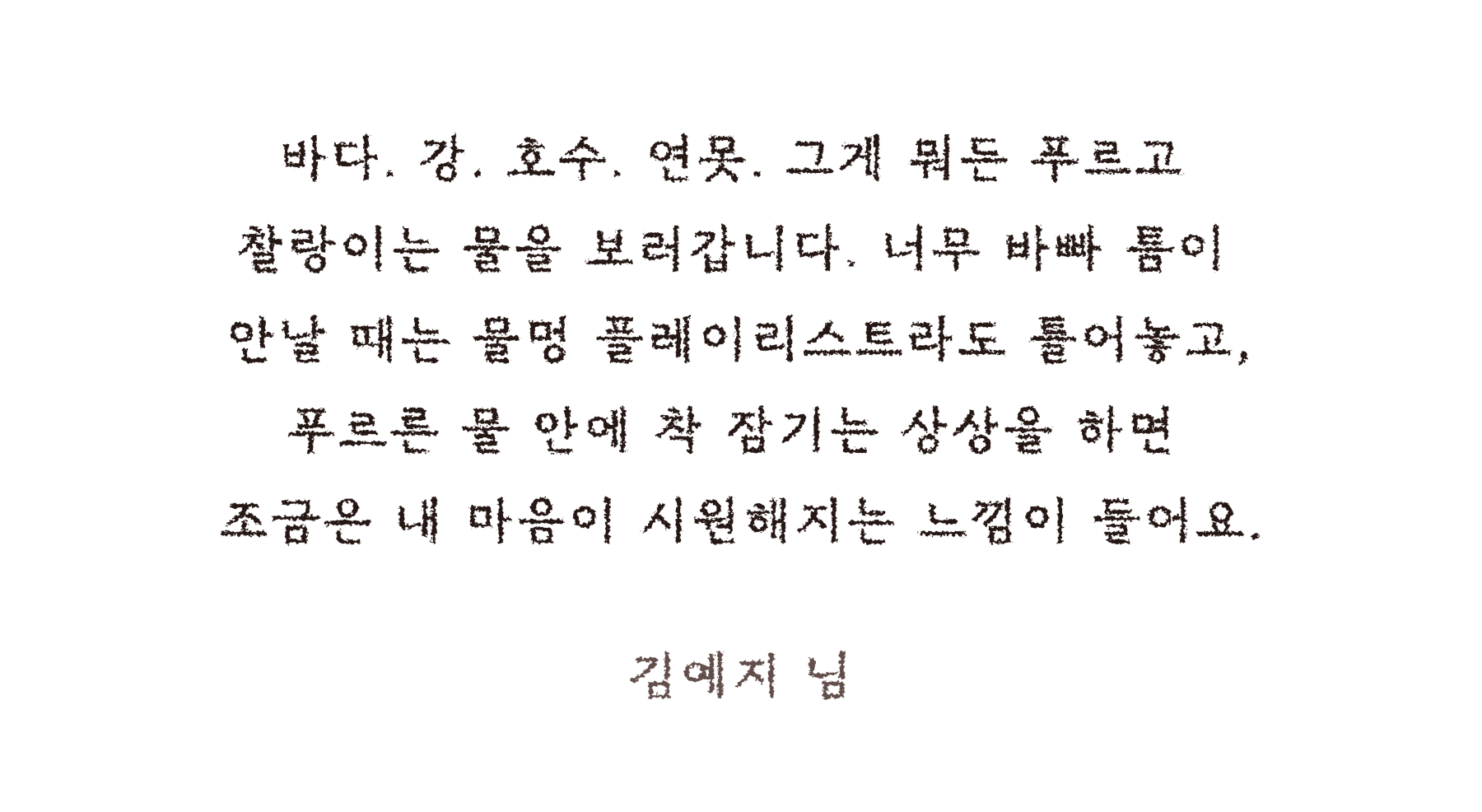 이번에도 참 할 이야기가 많은 뉴스레터였죠. 저희 이야기를 들어주신 여러분의 이야기도 듣고 싶습니다. 인스타그램 다이렉트 메시지나 자사몰 후기를 통해 가끔 올라오는 사용 후기에 요즘 참 자주, 그리고 깊이 감동을 받고 있어요.