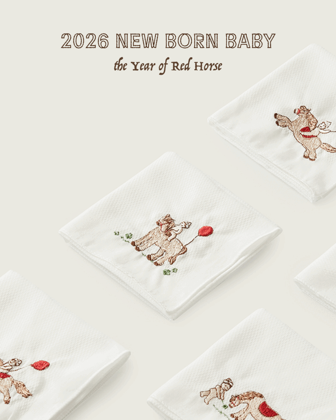 많이 기다려주신 2026 말띠 아가들을 위한 제품중 <말띠 가제 손수건>이 먼저 릴리즈 되었습니다. 예로부터 말띠 아이는 햇살처럼 밝고 따뜻한 마음을 지닌 존재라 여겨졌습니다. 씩씩하고 당당하게, 세상을 향해 나아가는 힘을 타고난 아이에게 2026년 붉은 말의 기운을 담은 자수를 선물하세요.🎁