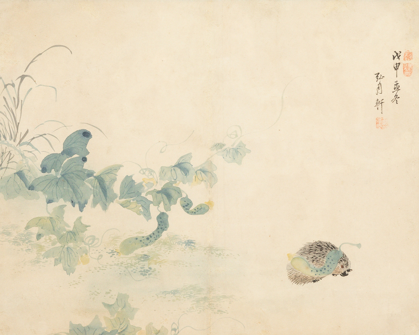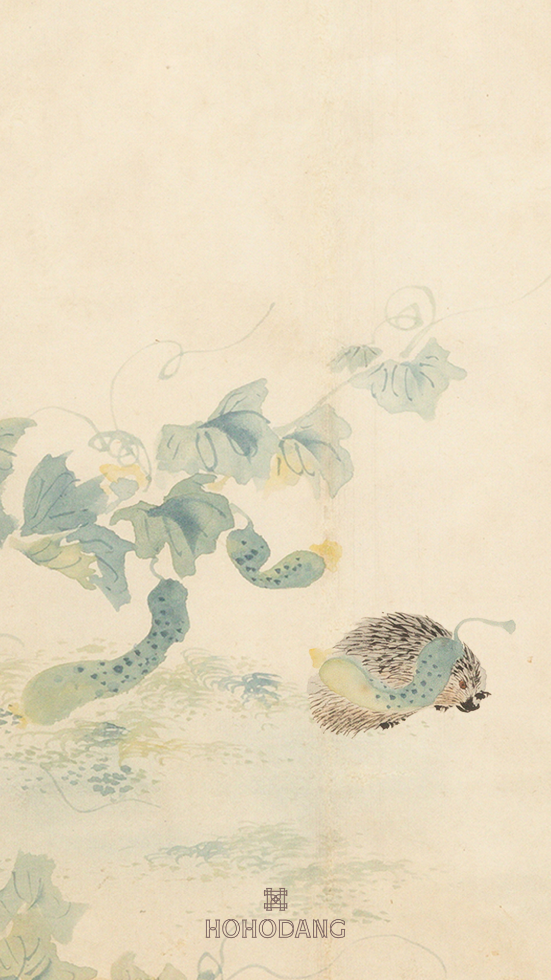 어느새 9월, 마치 시간을 도둑맞은 듯 빠르게 흘러갑니다. 그 ‘도둑맞은 시간’에서 자연스레 떠오른 오늘의 민화는 김득신의 '자위부과도(刺蝟負瓜圖)'입니다. 오이밭에서 고슴도치가 등을 가득 벌려 오이를 서리하는 모습을 그린 그림인데요. 넝쿨은 풍요로움을, 무수한 가시는 다복함을 상징합니다. 자기 몸에 오이를 박고 있는 고슴도치의 모습은 어딘가 애절하기도 하고 귀엽습니다. |