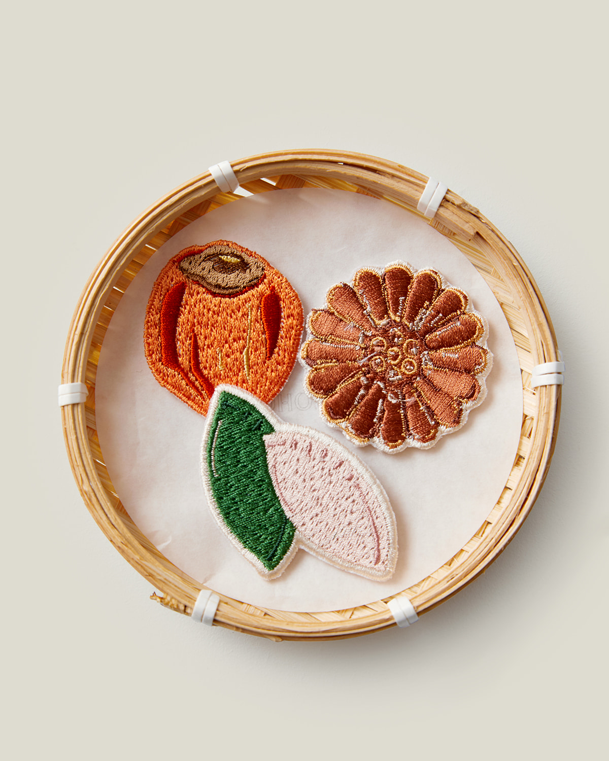 좋은 날이면 늘 곁에 함께하는 우리 먹거리, 곶감·약과·송편을 작은 패치로 담아냈습니다. 가방이나 도시락 가방 등 다양한 곳에 달아 귀여운 포인트로 즐겨보세요.