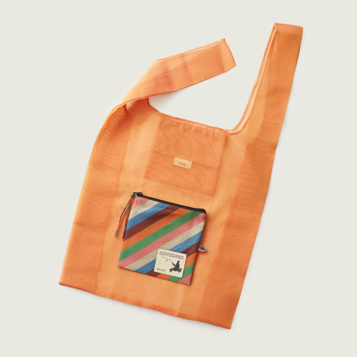 여권을 넣기 좋은 모시 색동 파우치 소 사이즈와 빛을 받으면 은은하게 빛나는 노방 포켓 에코백 세트. 에코백은 안주머니 안에 쏙 집어 넣어 작게 만들어 쇼핑백 대용으로 쓰기도 좋고, 여행 내내 가볍게 들고다니기도 좋아요.