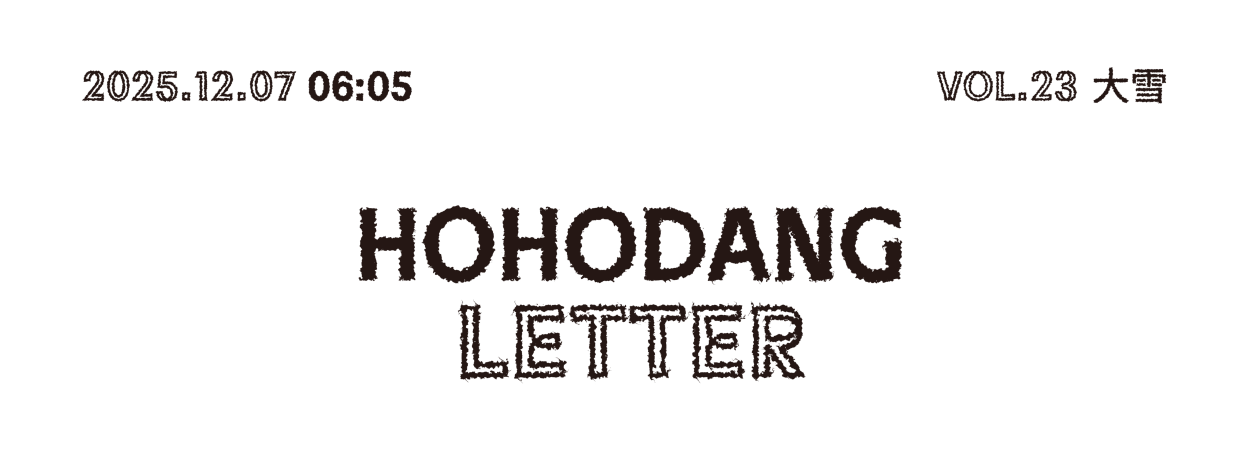 예로부터 하지에는 부채를, 동지에는 달력을 선물하며 계절의 기운을 나누었다고 합니다. 동지를 맞아, 한 해의 좋은 기운을 모아 만든 호호당 달력을 선물로 드릴 예정입니다. 참여 링크는 오는 수요일, 12월 10일에 뉴스레터 구독자분들께 보내드릴게요.